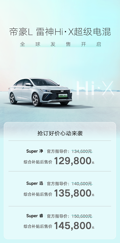 4月26日上午10:00,吉利首款雷神超级电混全能轿车-帝豪L雷神Hi·X超级电混正式发售,推出Super净、Super迅和Super睿三款车型...[详细]